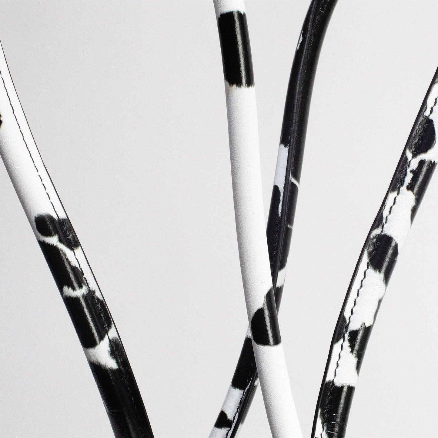 A graphic language in black and white, shaped by hand in small batches. Each piece developed slowly with a quiet family atelier in Florence — a city whose legacy in leather craftsmanship runs through every cut and fold.