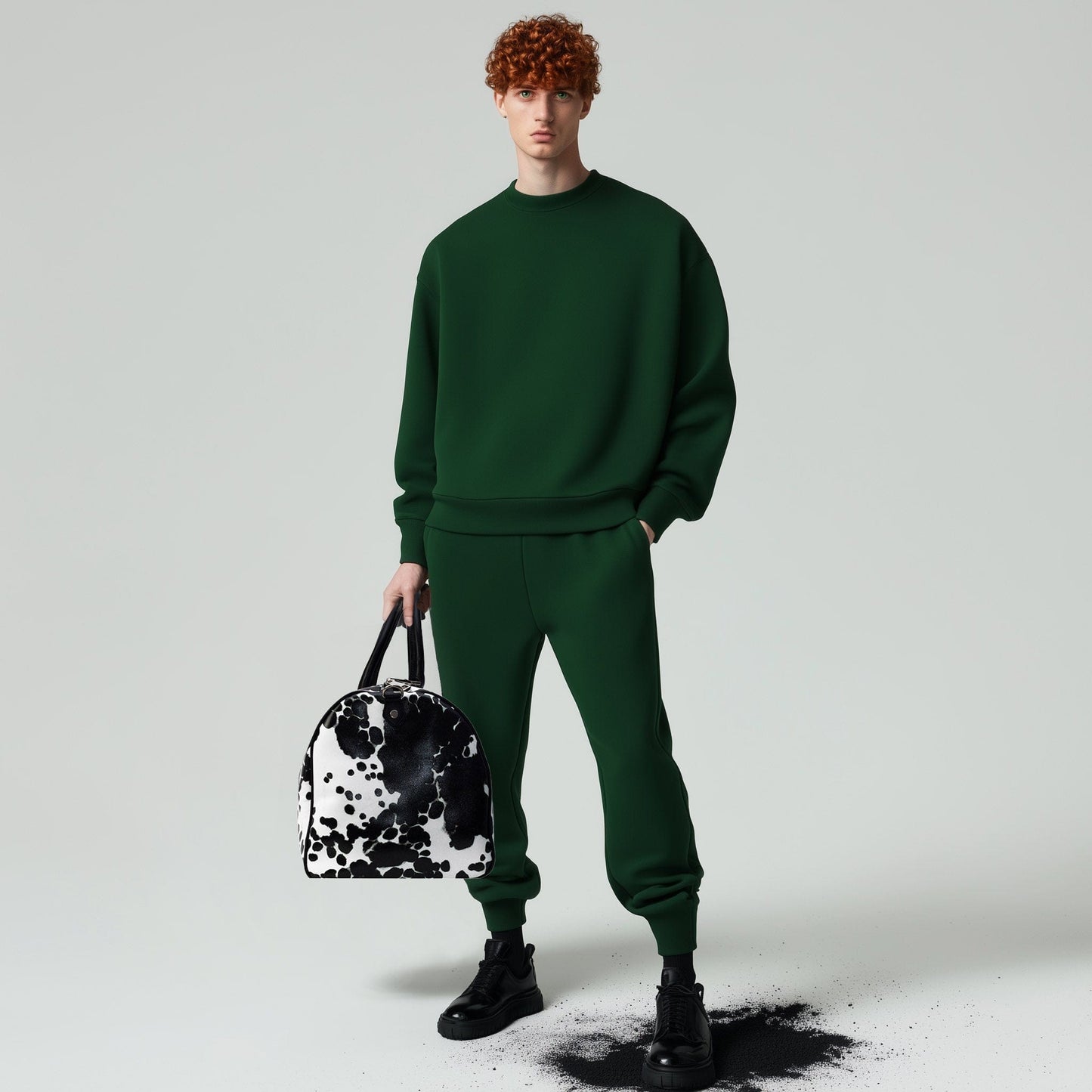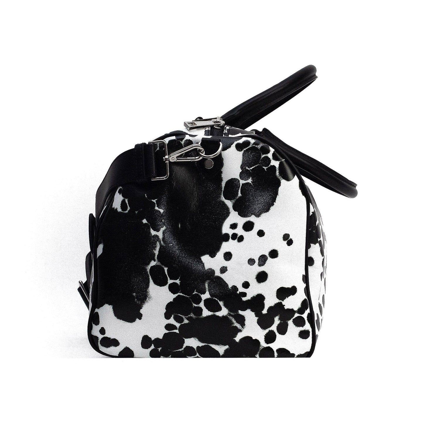 Spacious enough for weekend getaways, bold overnight moves, or quick carry-on escapes, this black and white leather duffel bag bridges function and presence. Strong double handles, a zip-top closure, and interior compartments balance structure with style — making it a luxury travel bag designed for the ones who don’t do ordinary.